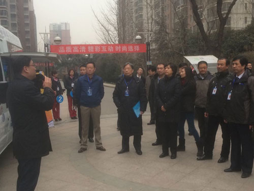 26日一早,国家新闻出版广电总局科技司王效杰司长、总局科技委杜百川副主任、广科院邹峰院长、规划院姜文波院长、广科院盛志凡总工、中国广播电视网络有限公司曾庆军副总经理、以及来自上海、广东、湖南、湖北、浙江、辽宁等地有线电视网络公司的技术专家,到西安市长安区富力城小区用户家中参观、体验了TVOS的应用情况。