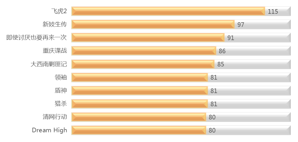 柱体表示本周新进榜;