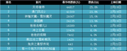 2、春节档影片票房前10名影片