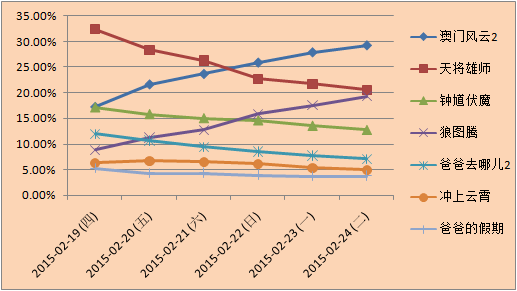 春节档各片份额走势