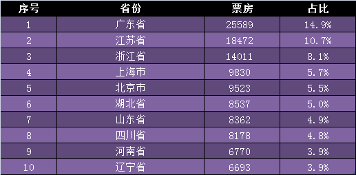 3、春节档省份票房前10名