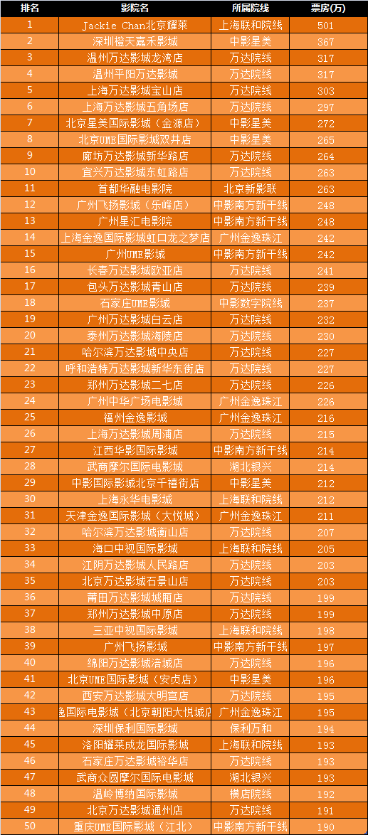 6、春节档全国票房前50名影院