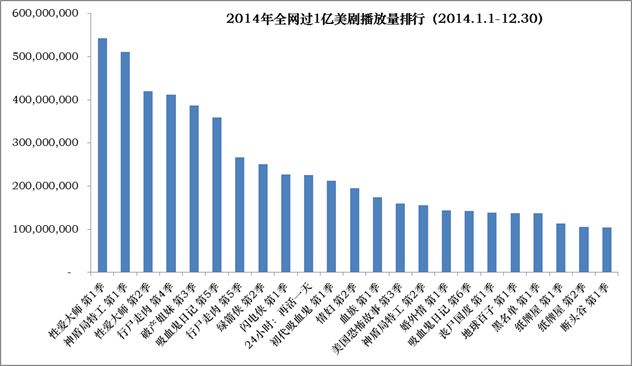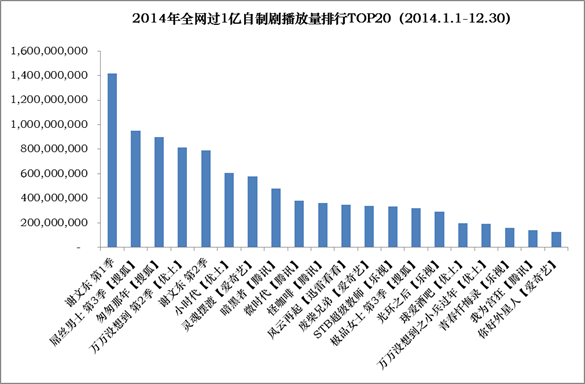 (数据说明:仅统计2014年年内开播自制;播放量统计时间:PV-TOOL 2014.1.1-12.30)