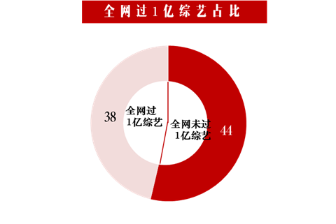 但尽管近两年来综艺节目几近井喷状态,按照数据表现来看,大批综艺节目还是走上了炮灰的道路。2014年全网过1亿综艺共38部,贡献整体(82部)流量的92%,而余下的44部综艺仅贡献8%流量,两极分化现象格外严重。