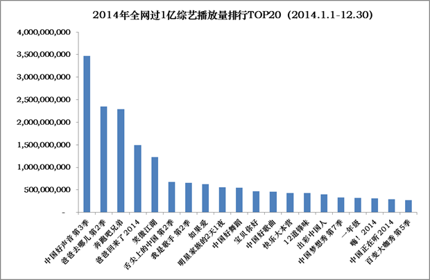 (数据说明:仅统计2014年年内开播综艺;播放量统计时间:PV-TOOL 2014.1.1-12.30)
