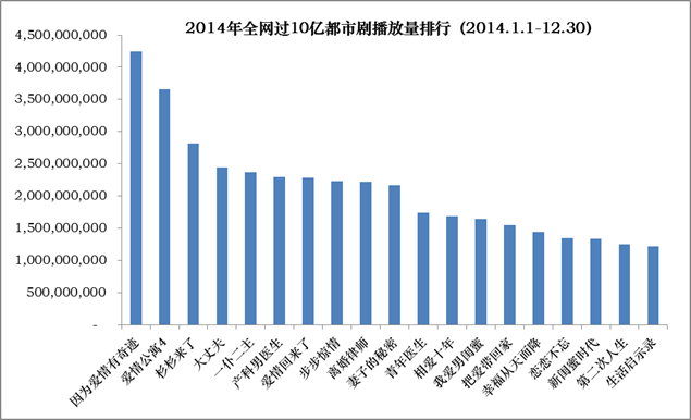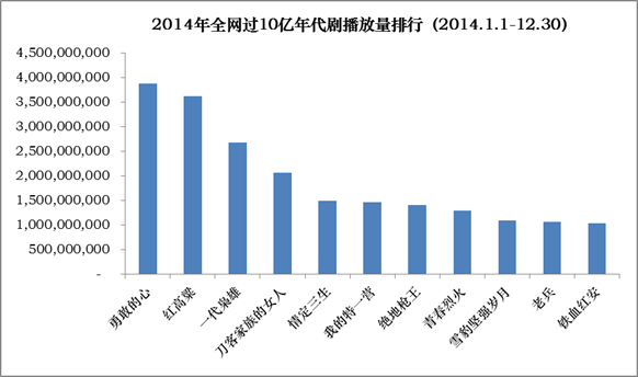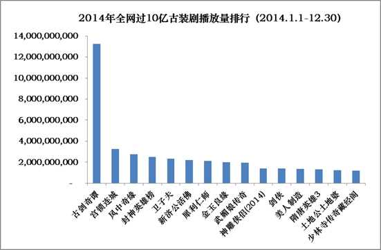 (数据说明:仅统计2014年年内开播剧目;播放量统计时间:PV-TOOL 2014.1.1-12.30)