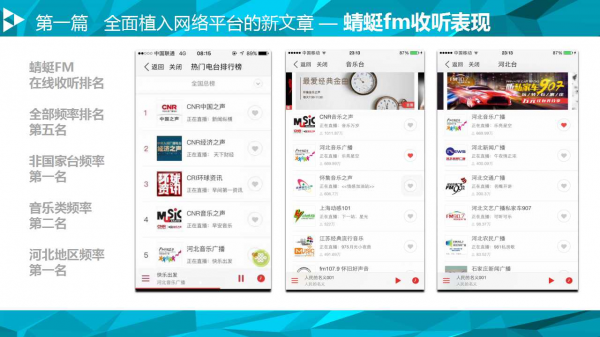 广播电视媒体与新兴媒体融合发展是大势所趋,是广播电视媒体革新图存、赢得未来的必由之路。把握媒体融合发展大势,增强广播电视媒体与新兴媒体深度融合的紧迫感。以深度融合思维统领广播电视发展顶层设计和媒介资源配置,推动广播电视媒体与新兴媒体融为一体、合而为一。在今年“BIRTV媒体融合峰会”上,河北广播电视台音乐频率副总监王伟从三个方面对广播媒体的融合发展做出了详细阐述。