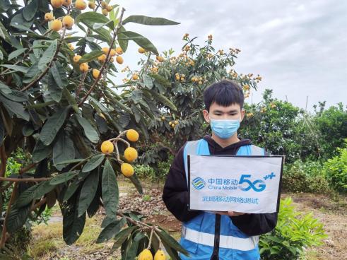 图为:广西移动技术人员在枇杷果园开展网络测试