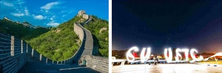 中国-南非“一次一密”加密传输的图片(左图为长城照片,右图为南非斯坦陵布什大学实验现场)