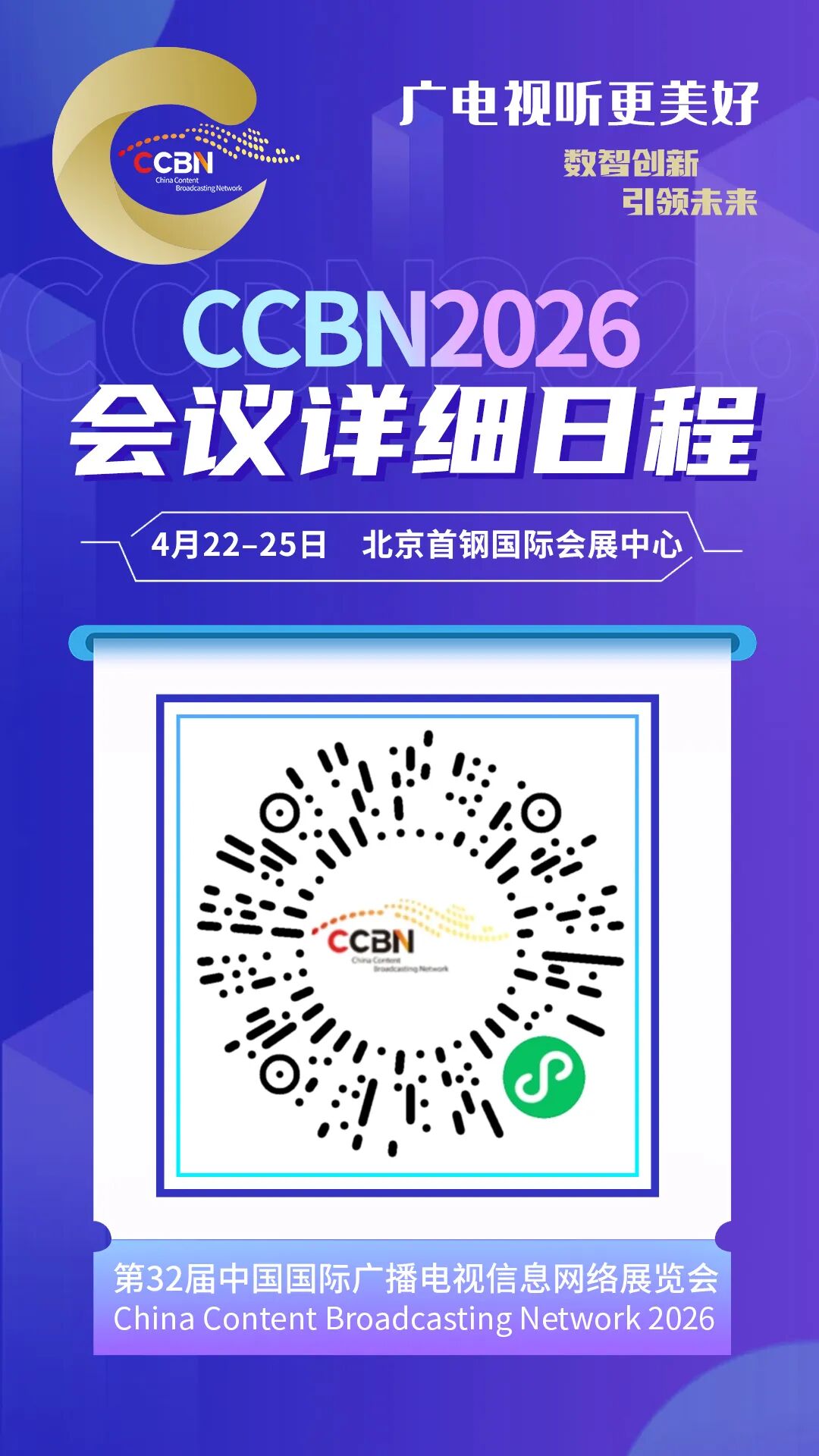 CCBN2026(第32届中国国际广播电视信息网络展览会)会议论坛详细日程先睹为快!本次展会将于2026年4月22日至25日在北京首钢国际会展中心隆重举行,日程将持续更新,敬请关注。