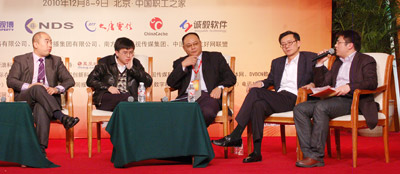 | 中广互联执行主编刘兰兰宣布“中国广电行业十大新闻”结果。 | | | 新浪科技代主编甘利宣布2010年广电技术领域十大事件”结果。 | | | 李向坤认为,目前三网融合已现实的来到了我们身边,广电行业面临着机遇与挑战是大家的共识。但是,对于广电行业特别是广电网络 ,究竟是机遇大于挑.. | |